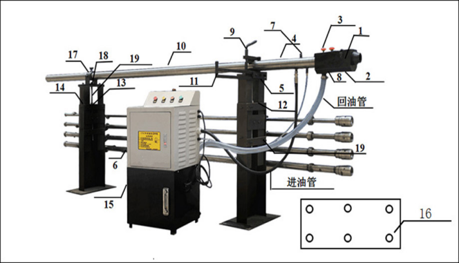 液壓油流經(jīng)活塞桿,再進(jìn)入導(dǎo)管,提供棒材全長(zhǎng)液壓支撐,當(dāng)棒材轉(zhuǎn)動(dòng)時(shí),液壓力相對(duì)升高,棒材就會(huì)在料管中央轉(zhuǎn)動(dòng);